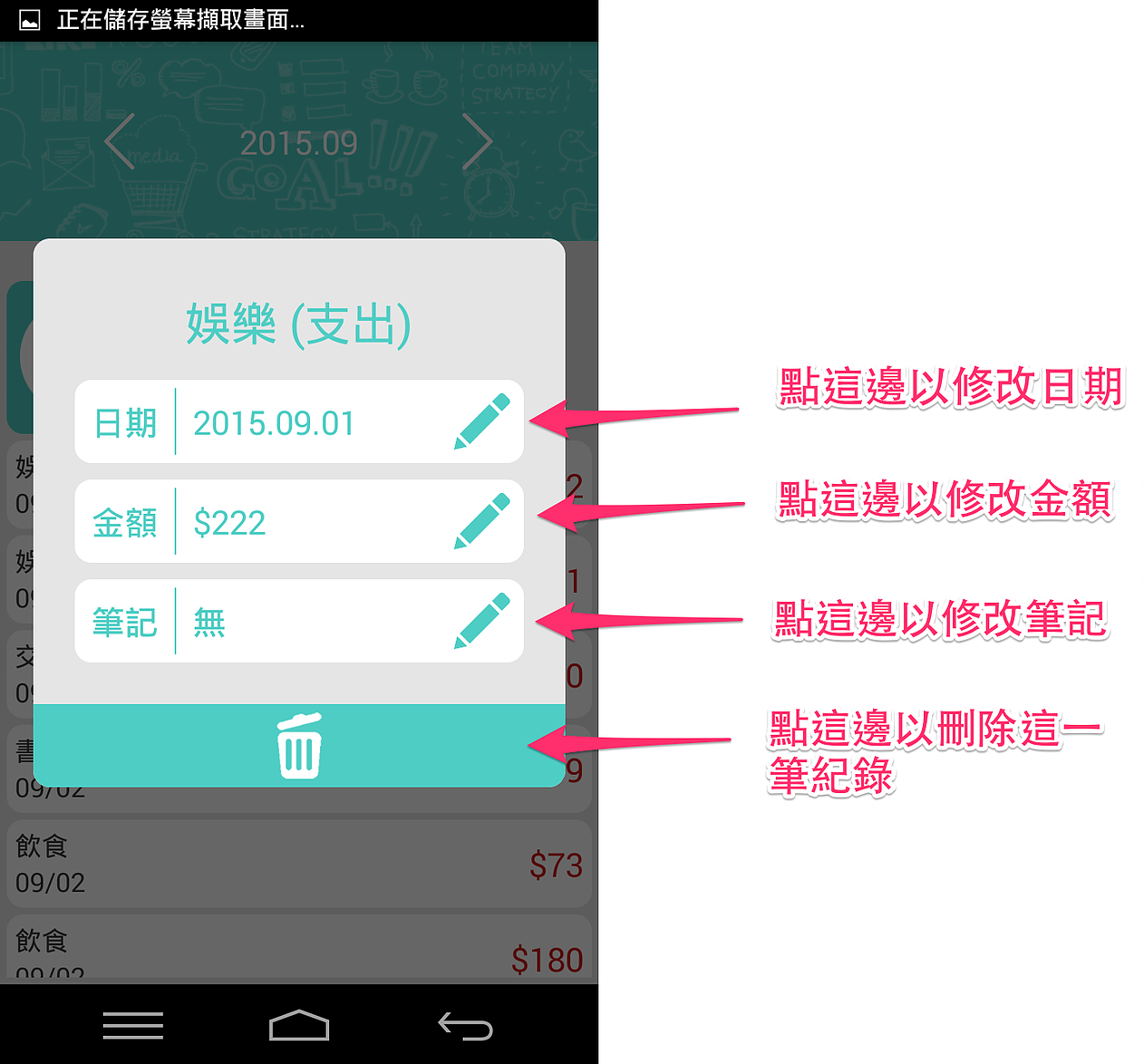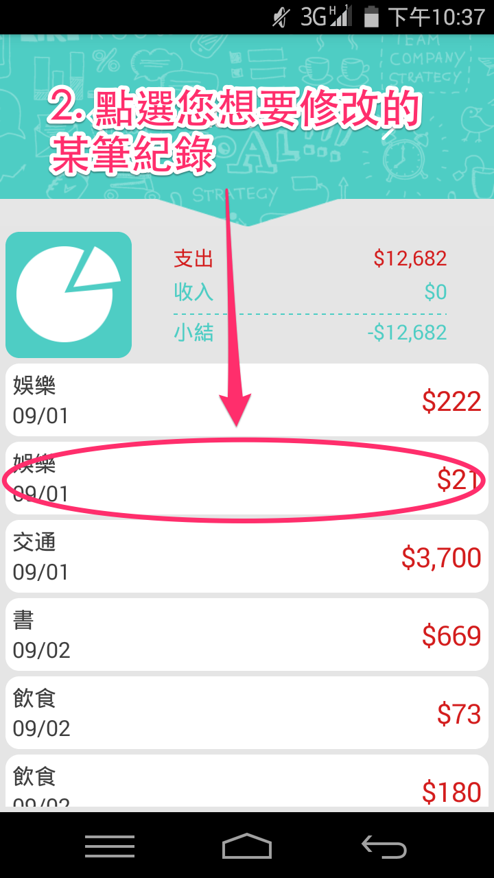 如果您想修改或刪除某一筆紀錄,請看圖片說明: