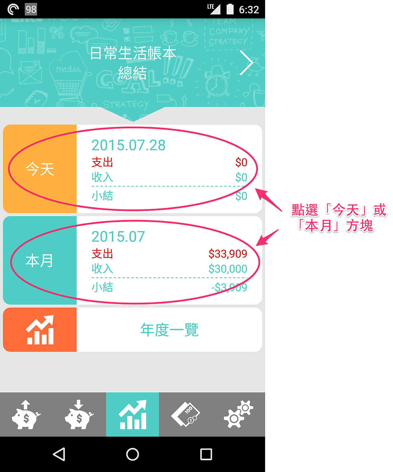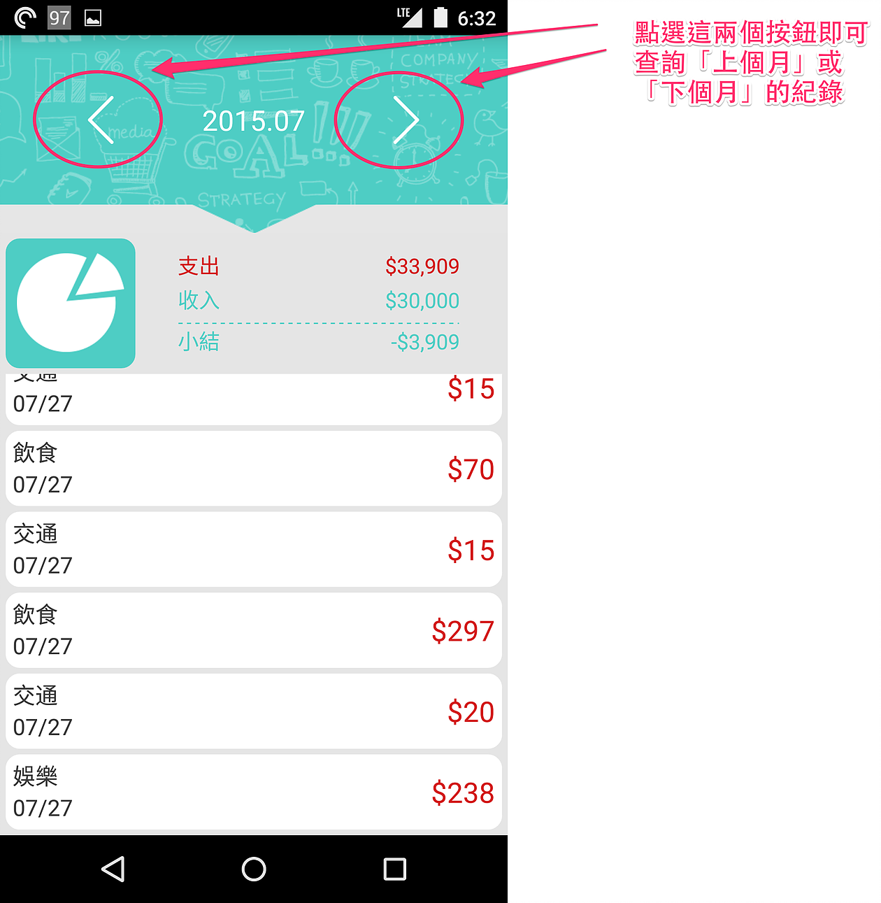 如果您想要查詢「上個月/下個月」或「昨天/明天」的紀錄,請看圖片說明:
